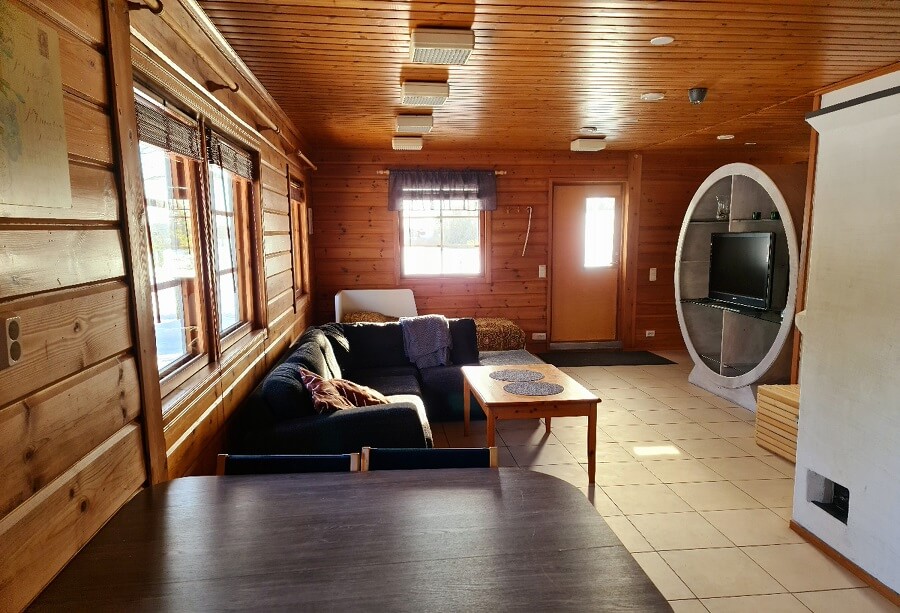 Päämökissä on nukkumapaikkoja 6lle; parisänky, avattava sohvasänky ja 2 pumpattavaa varapatjaa.